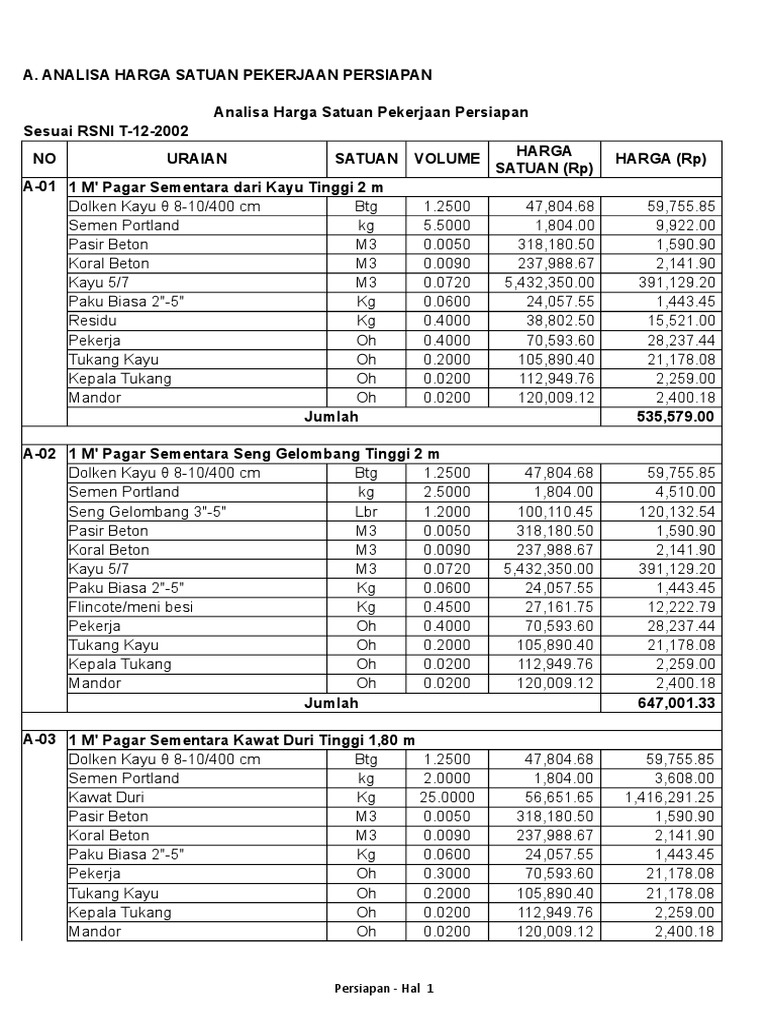 Analisa harga satuan pekerjaan memasang 1 m2 bekisting jembatan untuk pengecoran beton berdasarkan tata cara perhitungan harga satuan pekerjaan beton untuk konstruksi bangunan gedung dan perumahan sta. Bahan adukan lantai kerja ini semen pasir dan split dengan perbandingan 1. Secara otomatis harga didalam analisa harga satuan berubah. Analisa harga satuan pekerjaan.
