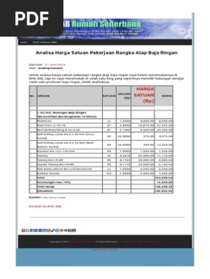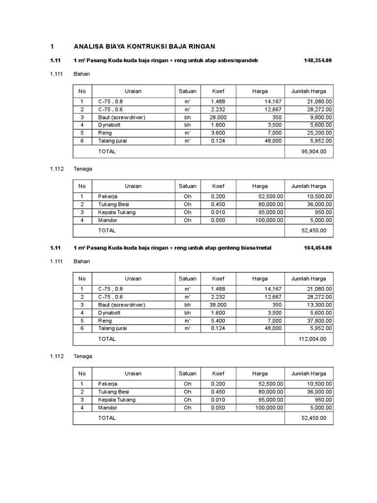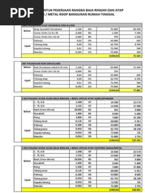 Analisa harga satuan pekerjaan rangka atap baja ringan diposkan. Inilah analisa harga satuan pekerjaan rangka atap baja ringan dalam format gambar.