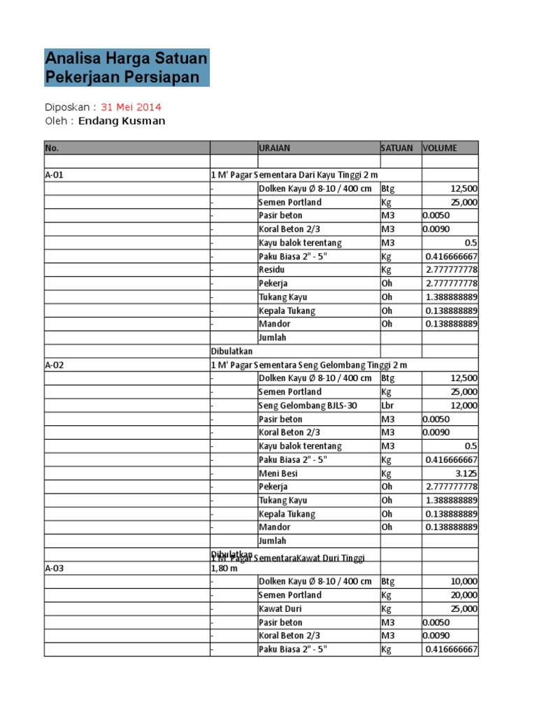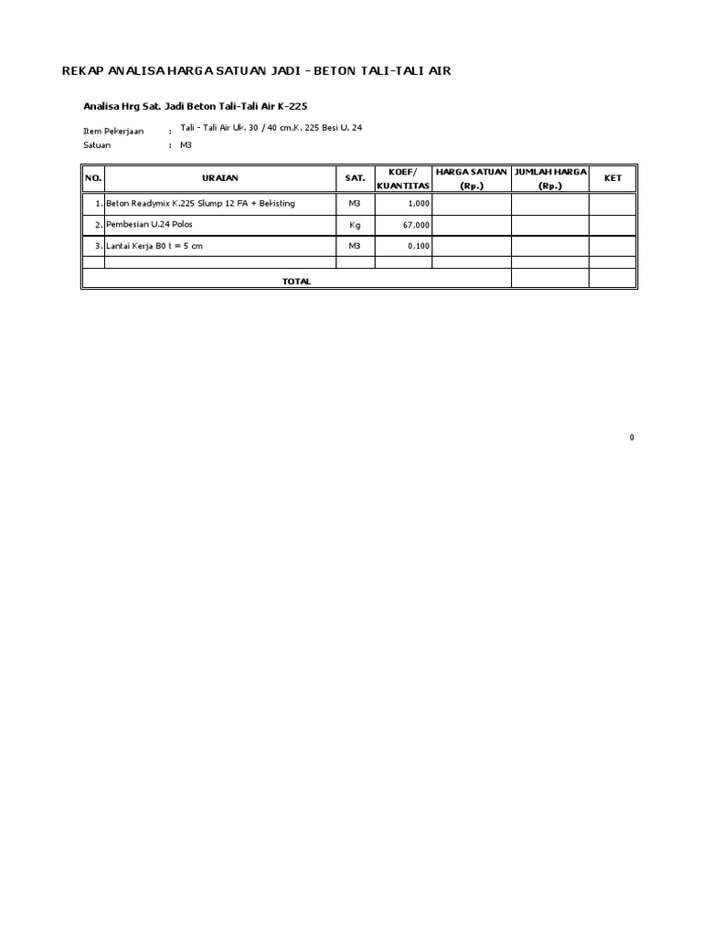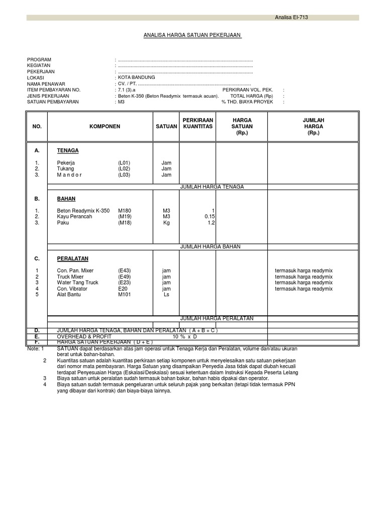Analisa harga satuan pekerjaan beton ready mix. Kami akan membahas analisa harga satuan pekerjaan beton ready mix. Analisa harga satuan pekerjaan aluminium ex. May 7th 2018 analisa harga satuan pekerjaan beton ready mix pondasi cor gantung tos perhitungan pekerjaan jalan rabat beton 14 19. Berikut kami cantumkan daftar harga beton ready mix untuk wilayah.