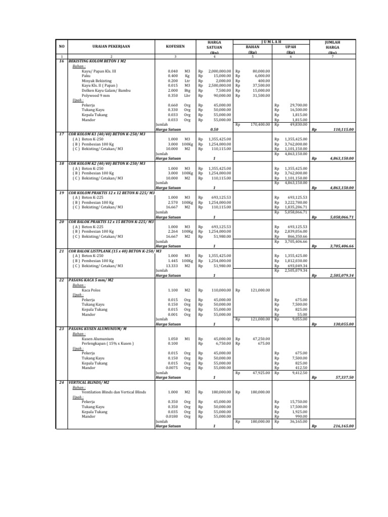 Analisa harga diatas merupakan perkiraan sendiri jadi tidak terkait dengan analisa sni karena memang pada dasarnya analisa sni dari manapun belum menetapkan untuk pekerjaan tersebut. Analisa harga satuan lab biologi rab struktur 2.