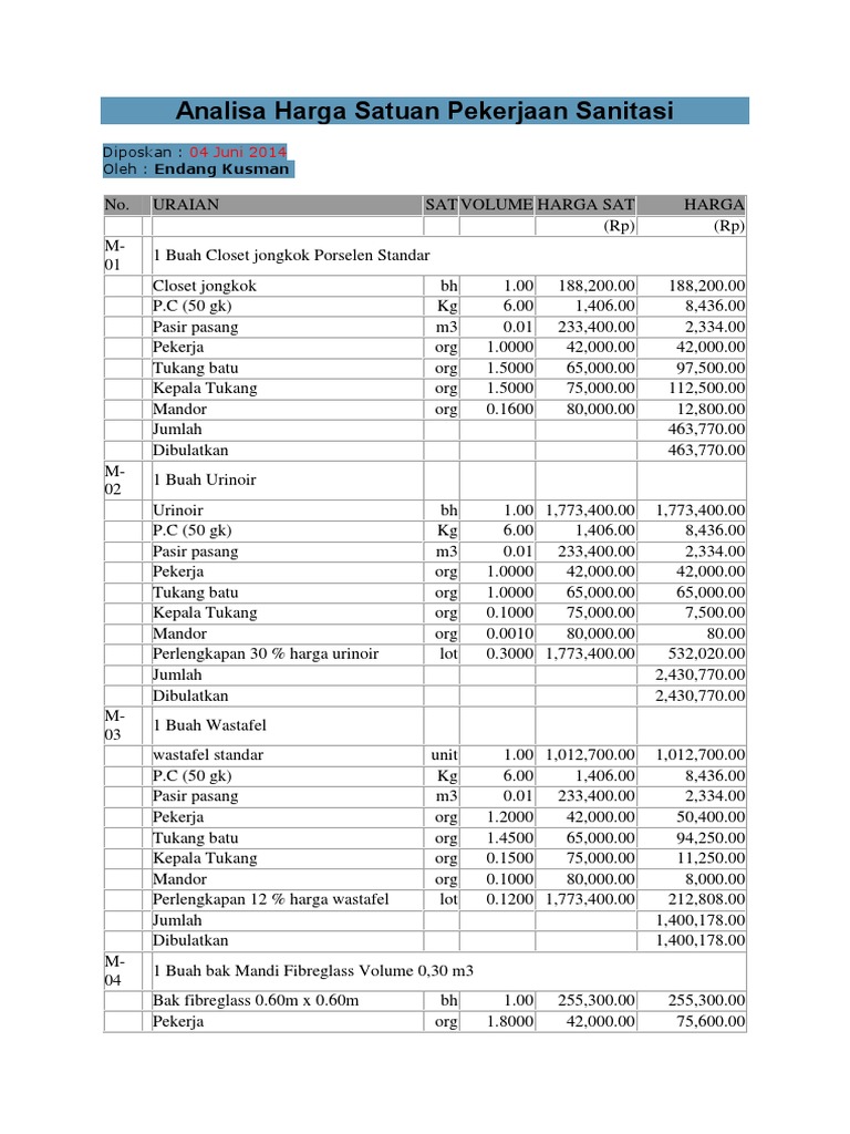 Analisa harga satuan pekerjaan plat besi. Anda tinggal memasukan harga yang biasa anda beli dan upah kerja. Analisa harga satuan sni 7393 2008 no 6 1. Analisa harga satuan pekerjaan file ini rab berupa file exel yang sudah di modifikasi sehingga ter intregrasi antara harga upah harga matrial analisa dan uraian pekerjaan. Setelah sebelumnya telah dibahas tentang analisa harga satuan beton berikut ini material rumah akan menyajikan analisa harga satuan pembesian beton bertulang yang asalnya bersumber dari sni tetapi telah kami modifikasi dan sesuaikan sehingga mungkin sedikit berbeda dengan versi sni.
