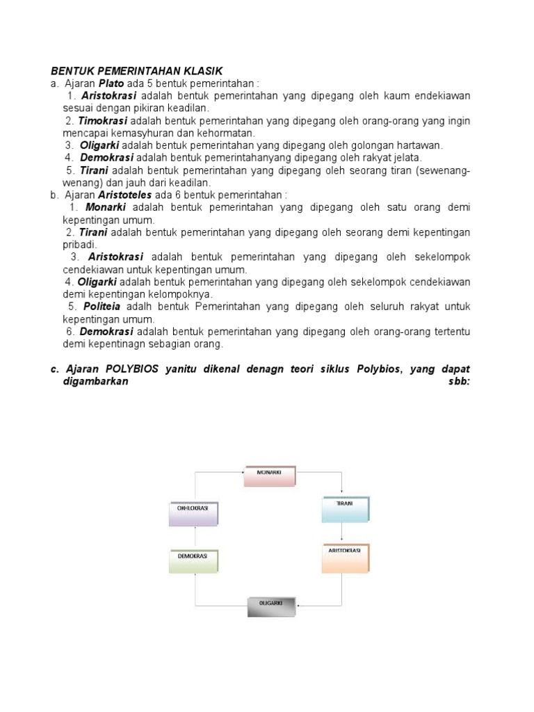 Bentuk pemerintahan klasik. Aristokrasi adalah bentuk pemerintahan yang dipegang oleh kaum endekiawan sesuai dengan pikiran keadilan. Bentuk pemerintahan klasik teori teori tentang bentuk pemerintahan klasik pada umumnya masih menggabungkan bentuk negara dan bentuk pemerintahan. Susunan pemerintahannya yang merupakan jumlah orang yang memegang pemerintahan dengan menggunakan kriteria kuantitatif. Timokrasi adalah bentuk pemerintahan yang dipegang oleh orang orang yang ingin mencapai kemasyhuran dan kehormatan.