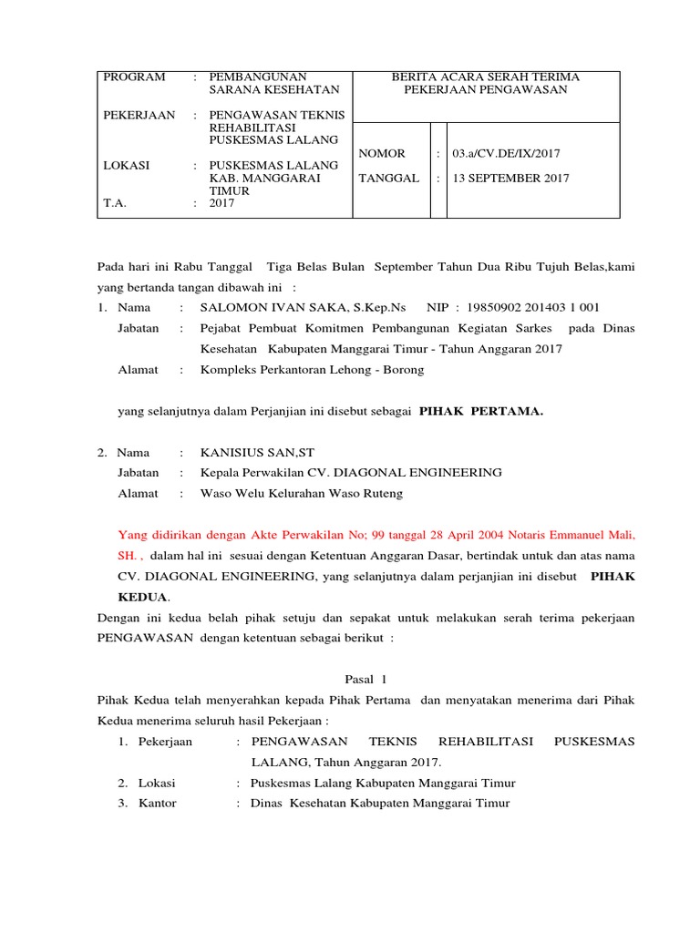 Kalender pendidikan paud kab. Pekerjaan terkadang membuat kita dipercaya melakukan perjalanan kedinasan. Berita acara penjelasan pekerjaan bap pada postingan saya hari ini adalah lanjutan dari contoh formulir pelaksanaan pekerjaan swakelola dan pelaksanaan pekerjaan dengan penyedia barang jasa yang saya posting kemarin. Bahwa dengan telah dilakukannya serah terima bangunan sebagai hasil pekerjaan pelaksana konstruksi berdasarkan berita acara ini maka dengan demikian kewajiban pihak kedua sebagai pelaksana kerja yang berkewajiban untuk melaksanakan pekerjaan mendirikan bangunan sebagaimana ditentukan dalam perjanjian telah selesai dilaksanakan.
