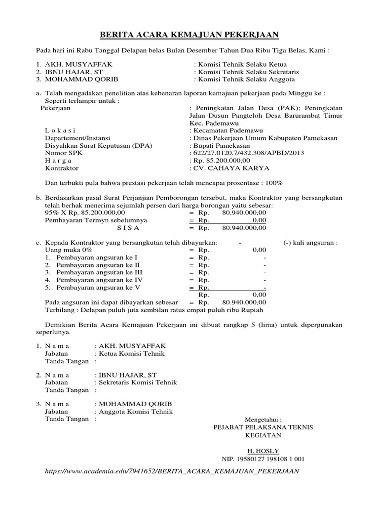 Berdasarkan berita acara pemeriksaan pekerjaan tahap kedua tanggal 21 nopember 2011 spk no. Contoh berita acara kemajuan pekerjaan fisik. Phisik pekerjaan telah mencapai 100 seratus persen 2. 15 contoh surat berita acara untuk berbagai keperluan.