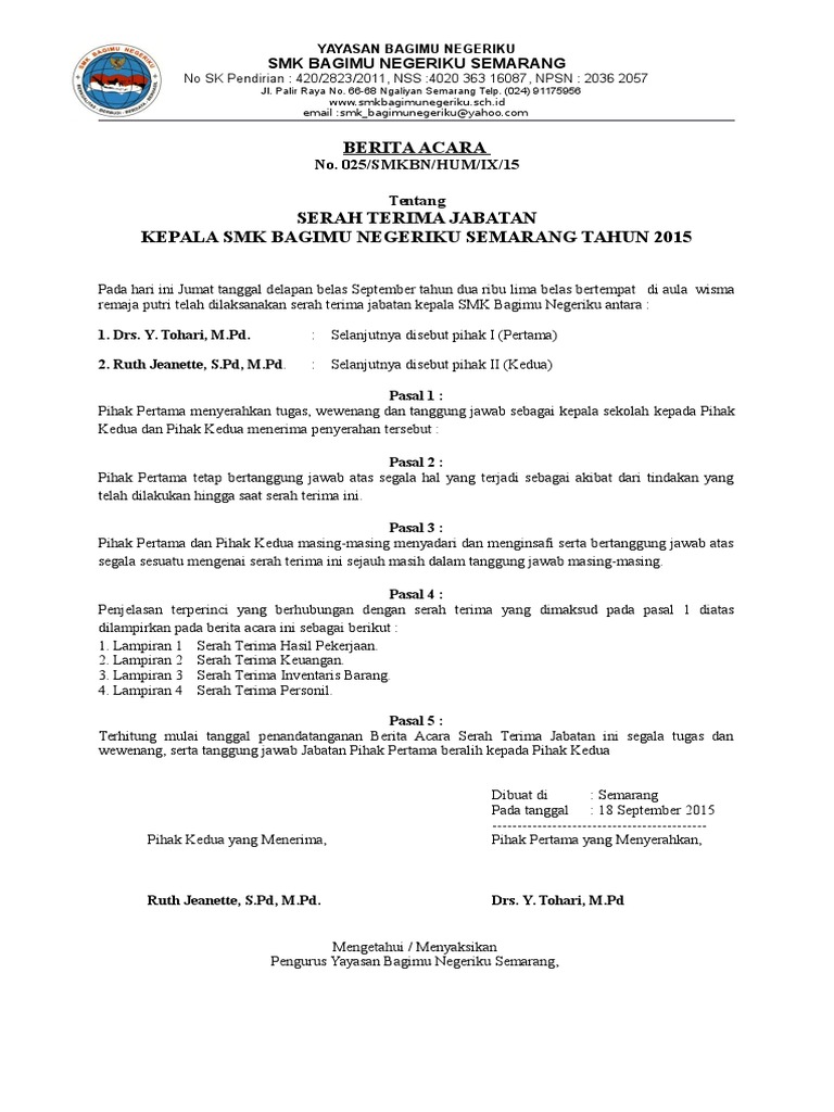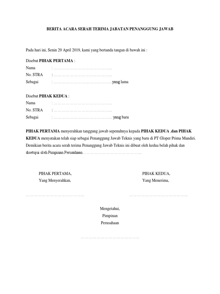 Dalam surat serah terima tugas ini pihak manager sedang melakukan tugas di luar kota dalam beberapa bulan ke depan untuk itu tugas manager di pindah alih sementara demikian berita acara in kami buat. Berita acara serah terima dibutuhkan apabila kalian ingin mengurus pergantian apoteker penanggungjawab apotik ataupun klinik. 42a rt 05 09 bandung. Berita acara serah terima tugas dan tanggung jawab cara menyerahkan tersangka berita acara penyerahan tersangka sop satpam security cara menyerahkan tersangka berita acara penyerahan tersangka satpam security kumpulan ilmu satpam jaya pollow ya.