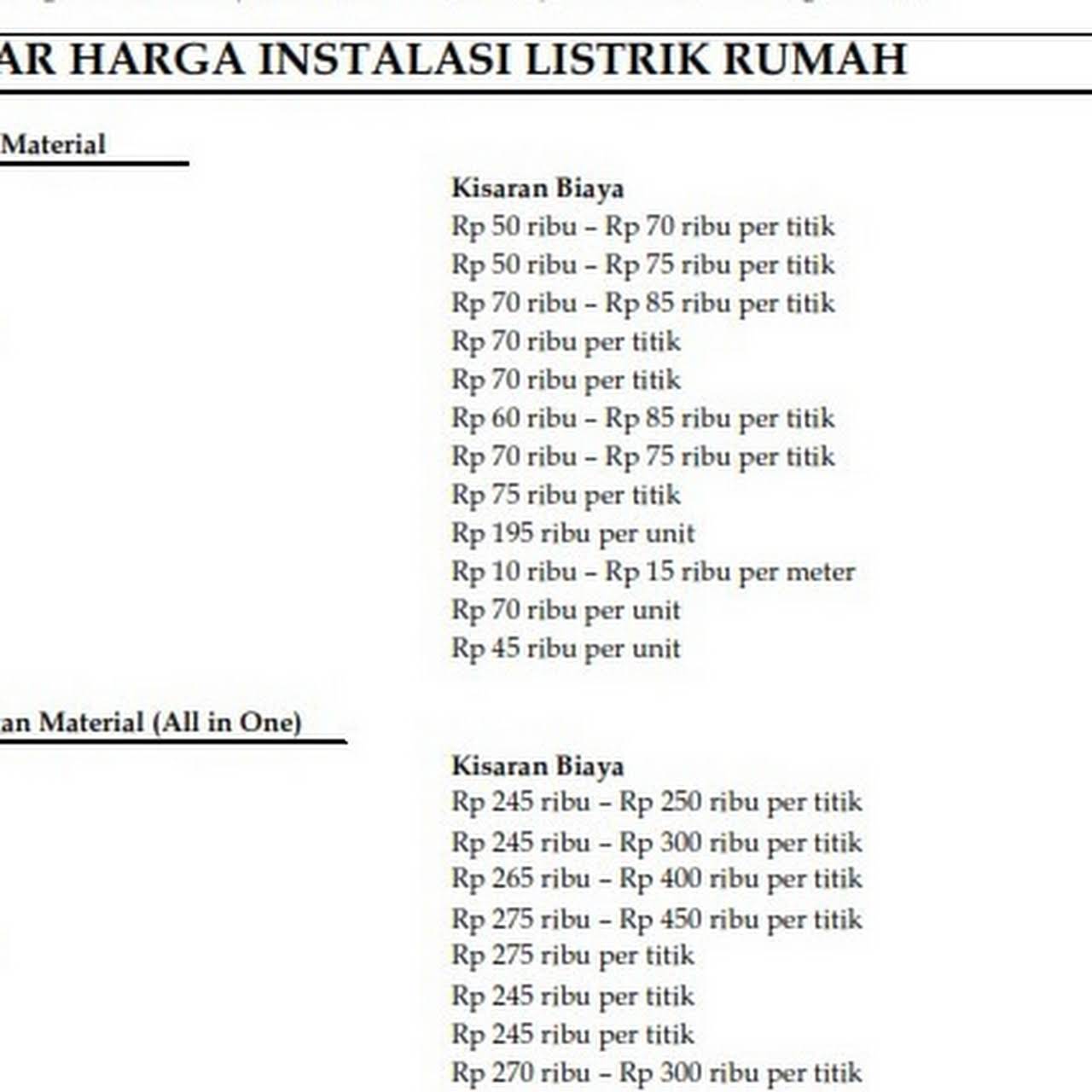Jika anda ingin mengetahui biaya instalasi listrik rumah pasang baru material non material maupun aksesoris lainya dapat langsung simak berikut ini. Biaya instalasi listrik rumah memang beragam tergantung perangkat yang ingin anda pasang. Instalasi titik lampu adalah antara dari titik mcb ke titik saklar ke titik lampu untuk sambungan lampu seri ada biaya tambahan rp. Instalasi stopkontak titik rp 250 000 5.