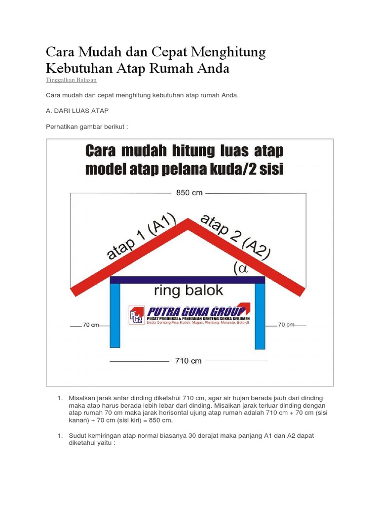 Perhatikan bahwa pada cara kedua ini pinggir bawah karton yang dijadikan patokan bukan pinggir atas karton. Disadur diterjemahkan kembali dari berbagai sumber di internet. Sudut kemiringan atap rumah untuk daerah tropis dengan curah hujan yang tinggi dan disertai angin yang kuat maka atap rumah harus memperhitungkan teknik mengalirkan air hujan yang baik. Lihat gambar potongan rumah diatas diketahui jarak horizontal ujung atap rumah 754 cm dan sudut kemiringan atap α alpha misalkan α 30 derjat maka lebar diagonal atap l l1 l2 dapat dirumuskan sebagai berikut.