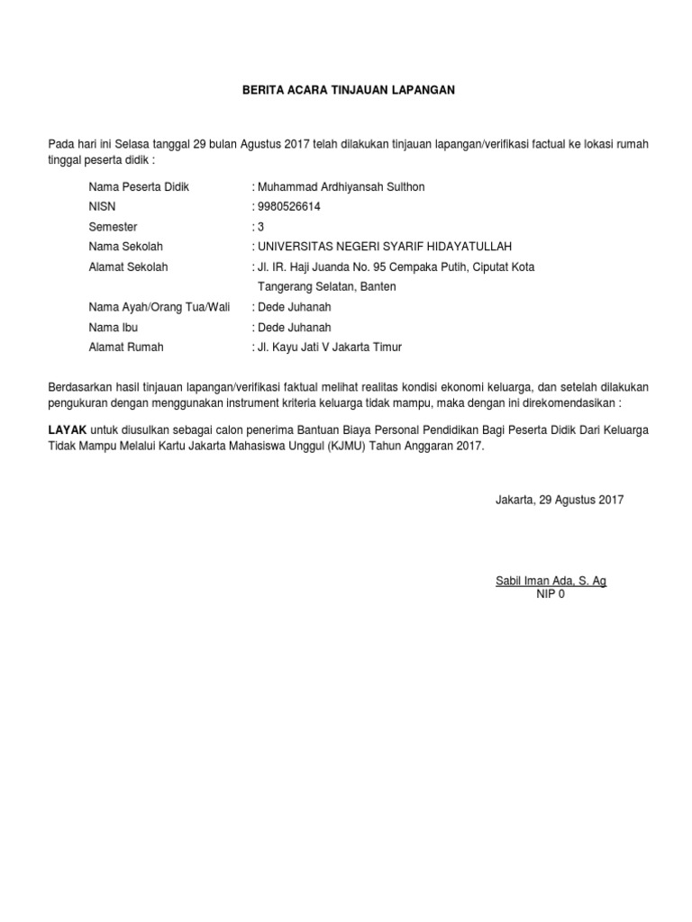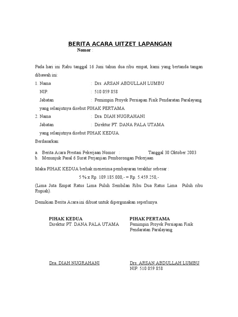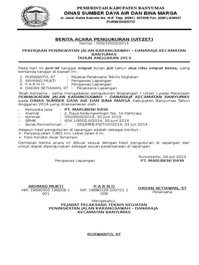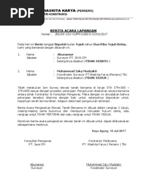 Contoh berita acara lapangan. Berita acara peninjauan lokasi pekerjaan nomor. Demikian berita acara ini dibuat dengan sebenarnya sesuai dengan fakta bukti di lapangan dan diteliti oleh masing masing pemeriksa selanjutnya masing masing pemeriksa membubuhi tanda tangan sebagaimana di bawah ini. W22 a9 769 pl 05 ix 2013 tanggal 23 september 2013 pengadaan peralatan dan fasilitas perkantoran berupa meubelair pengadilan agama 2 0 0. Bagi suatu permasalahan masalah baik berupa pelaksanaan perencanaan ataupun pengendalian kebijaksaan pimpinan.