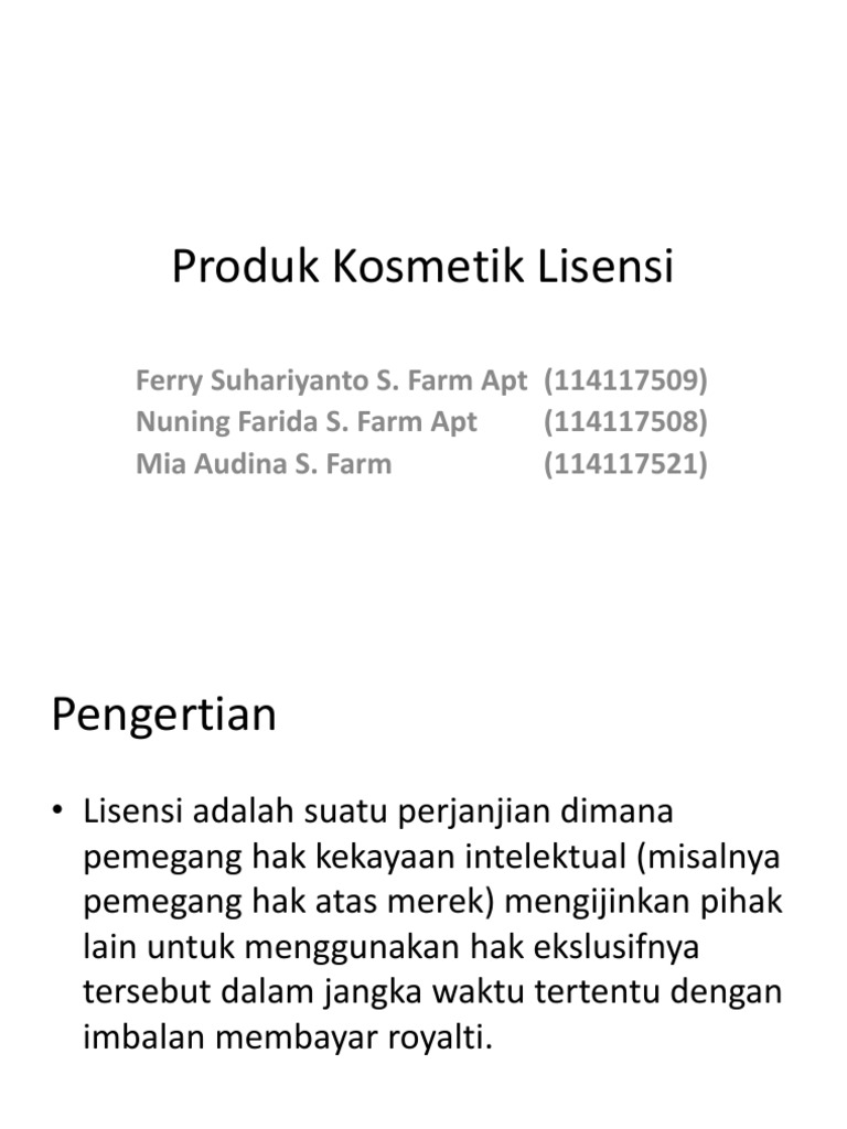 Sebagai contoh sebuah lisensi produk atau jasa untuk daerah atau regional amerika utara amerika serikat dan kanada tidak dapat dipakai di indonesia regional asia tenggara begitu juga sebaliknya lisensi. Lisensi massal perangkat lunak adalah lisensi dari pemilik ke perorangan untuk menggunakan sebuah perangkat lunak dalam satu. Istilah satu ini sering digunakan oleh perusahaan atau seseorang untuk bisa mematenkan sebuah produk atau merek dagangnya. Lisensi sering dimaksud sebagai bentuk pemberian izin untuk memanfaatkan hak dari keklisensi adalah pemberian izin dalam memproduksi sebuah produk dimana produk atau jasa tersebutayaan intelektual agar dapat diberikan pembei lisensi kepada penerima lisensi dengan maksud agar penerima lisensi dapat melakukan kegiatan usaha dengan menggunakan.