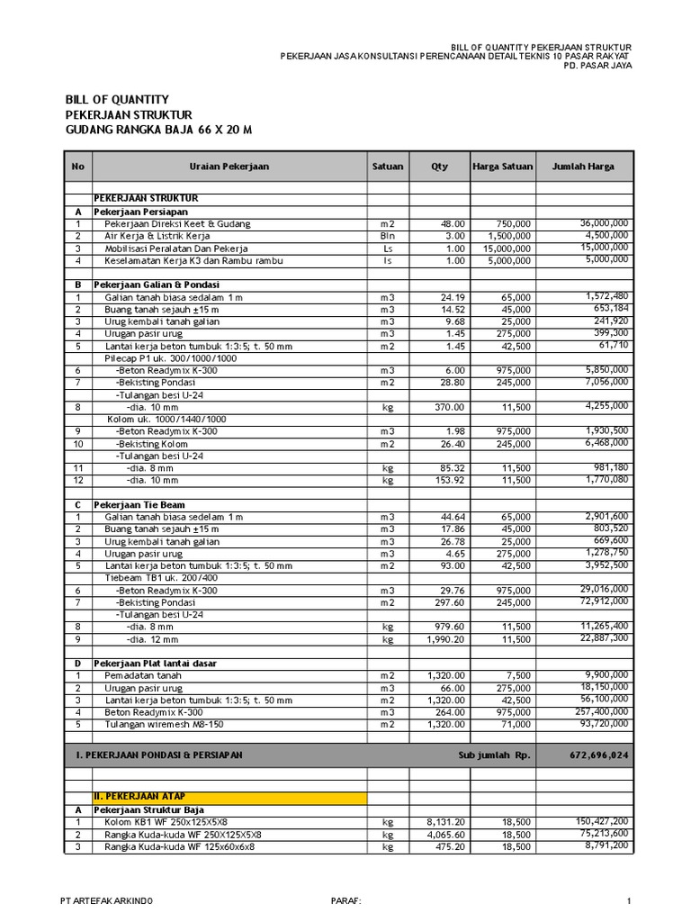 Kuda kuda baja iwf 250x125x6x9 tergantung panjang bentangan. Rab konstruksi baja save1 inilah contoh harga satuan bahan. Contoh desain konstruksi baja atap limas kerucut dengan menggunakan wf wide flange yang telah kami kerjakan di masjid al munawaroh palembang. Analisa dan biaya konstruksi baja ak perhitungan struktur gudang.