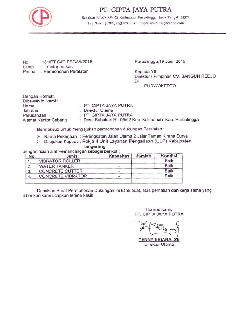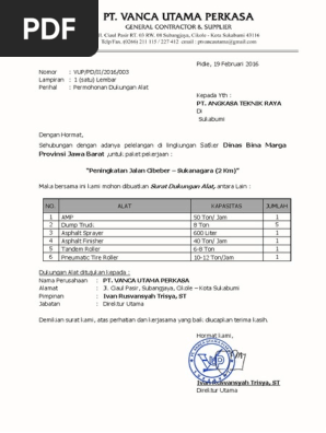 Contoh Surat Permohonan Dukungan Material