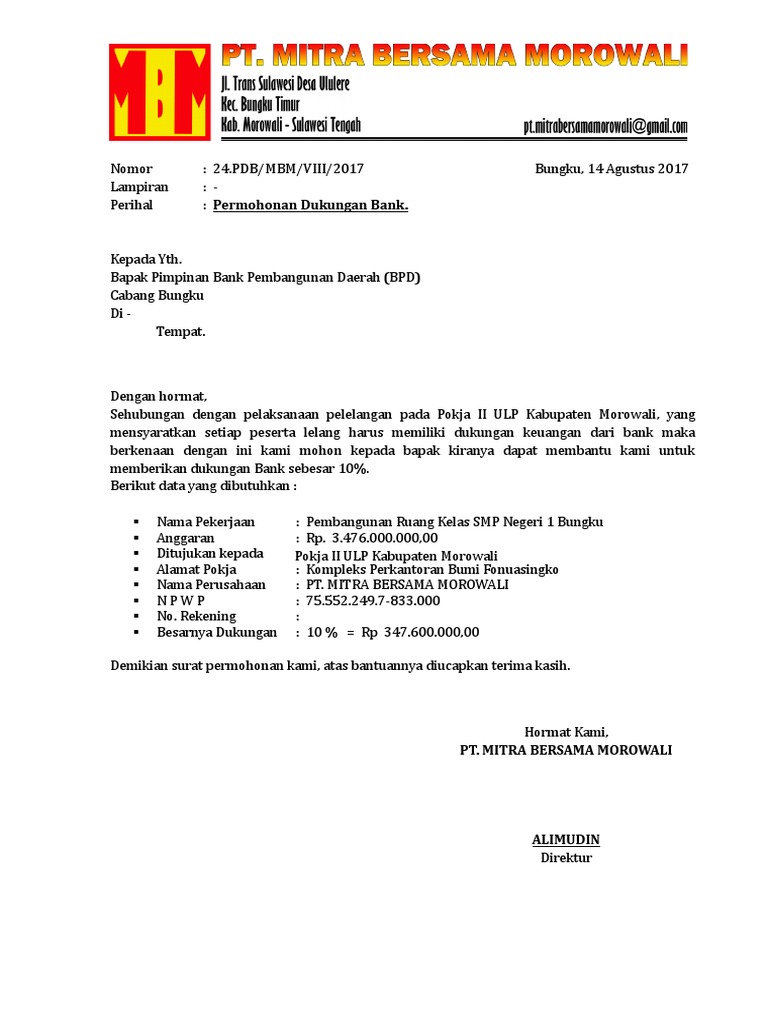 Perilaku kredibel membentuk promosi besi baja kami makin tak terhambat. Contoh surat dukungan distributor pada pelaksanaan sebuah pengadaan baik pengadaan barang jasa maupun konstruksi dibutuhkan surat dukungan sebagai salah satu nilai tambah. Kumpulan contoh format surat permohonan dukungan bank terbaik 2019. Kumpulan contoh format surat permohonan dukungan bank terbaik 2019.