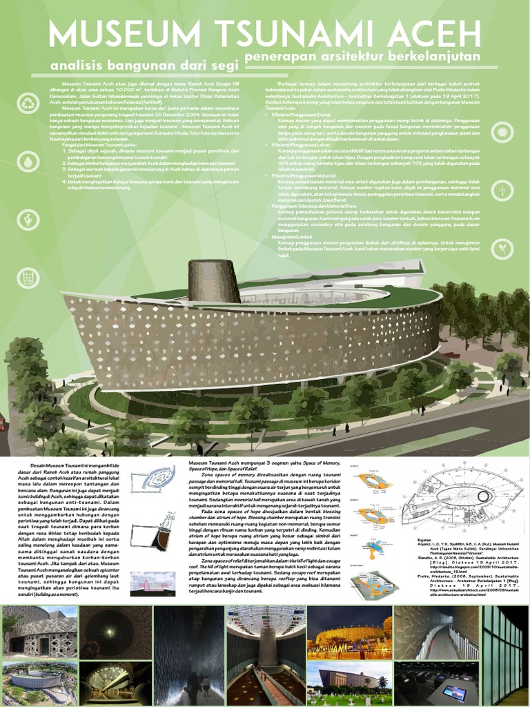 Denah museum tsunami aceh. Museum tsunami aceh berlokasi di jalan sultan iskandar muda banda aceh. Mengalahkan empat ratus nominasi museum yang berdiri di indonesia. Ketika masuk ke dalam museum pengunjung harus melalui lorong sempit dan gelap di antara dua dinding air yang tinggi. Museum yang dirancang dengan judul rumoh aceh as escape hill menggabungkan konsep rumoh aceh rumah bertipe panggung dengan konsep escape building hill atau bukit untuk menyelamatkan diri sea waves atau analogi amuk gelombang tsunami tari tradisional saman cahaya allah serta taman terbuka berkonsep masyarakat urban blog ini masih dalam tahap penyelesaian oleh admin.