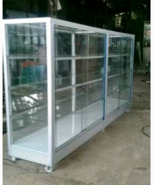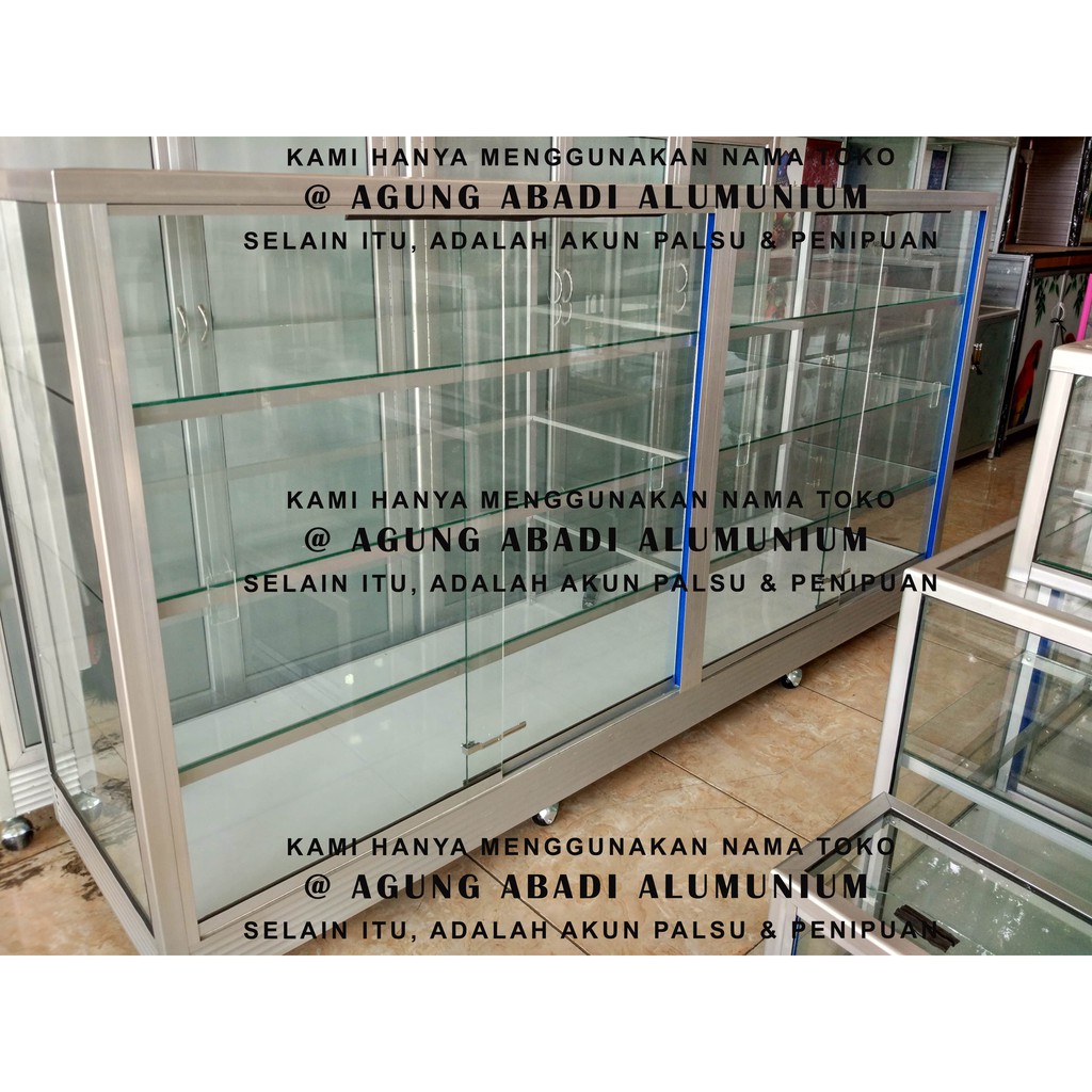 Belanja etalase rak susun aluminium dan kaca tinggi 2 meter murah.