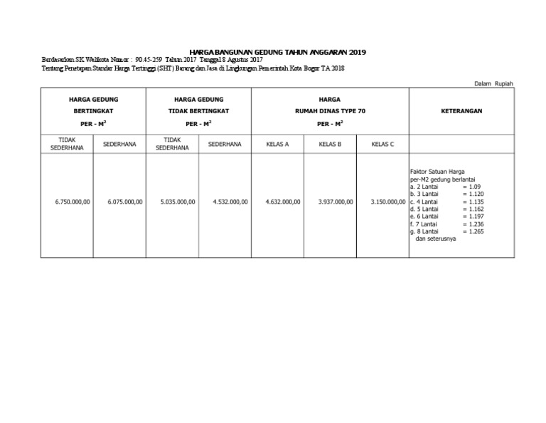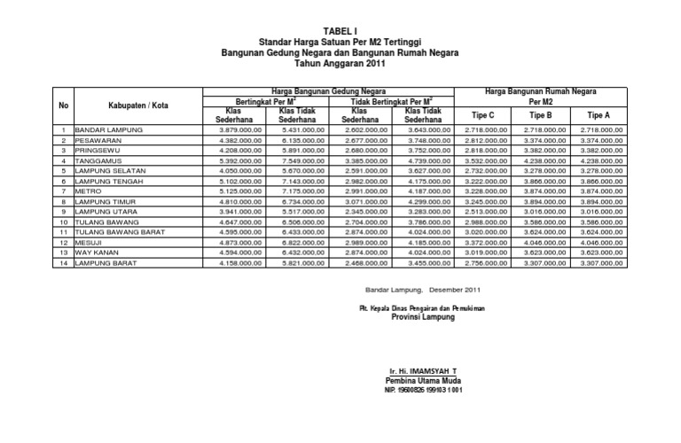 09 per m 2008 tentang pedoman sistem manajemen keselamatan dan kesehatan kerja k3 konstruksi bidang pekerjaan umum. Harga gedung tidak bertingkat per m2. Pedoman manual harga satuan pekerjaan konstruksi bangunan gedung dan perumahan. Untuk mewujudkan pembiayaan bangunan gedung rumah dinas dan pagar pemerintah kabupaten sampang yang efektif serta memenuhi persyaratan tekhnis perlu membentuk peraturan bupati tentang pedoman harga satuan per m2 tertinggi bangunan gedung rumah dinas dan harga satuan per m1 pagar pemerintah kabupaten sampang tahun anggaran 2017.