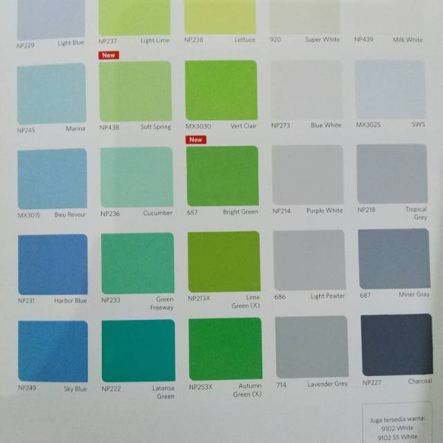 Selain artikel nomor warna cat nippon paint yang anda cari blog ini juga menyediakan artikel seputar harga borongan untuk tukang harga kabel listrik. Kami merekomendasikan untuk mengacu pada kartu warna kami yang tersedia di toko cat atau bahan bangunan terdekat. Tetapi kami tidak menjamin warna pada layar sama dengan warna produk yang sebenarnya. Kami telah berusaha membuat setiap warna pada layar seakurat mungkin.