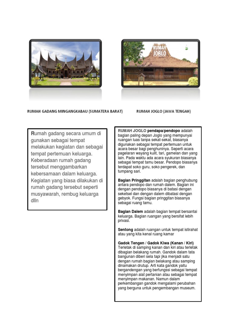Hal ini mencerminkan bahwasanya para nenek moyang bangsa indonesia merupakan orang yang cerdas. Dan sampai saat ini eksistensi rumah adat ini masih terjaga oleh masyarakat setempat. Bagian bagian rumah adat joglo.