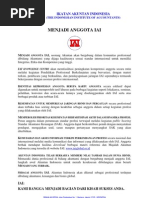 Menjadi anggota iai. Anggota iai adalah perseorangan yang memenuhi seluruh persyaratan keanggotaan dan mengikat dirinya dengan organisasi iai. Menjadi anggota iai sangatlah mudah dan yang lebih menarik adalah menjalani sebagai anggota iai merupakan tantangan yang besar. Mengajukan permohonan menjadi anggota secara tertulis dengan mengisi dan melengkapi formulir pendaftaran anggota yang diterbitkan organisasi ditujukan kepada pengurus daerah cabang tempat pemohon berdomisili. Ketentuan lebih lanjut mengenai prosedur untuk menjadi anggota iai sebagaimana dimaksud diatur dalam peraturan organisasi.