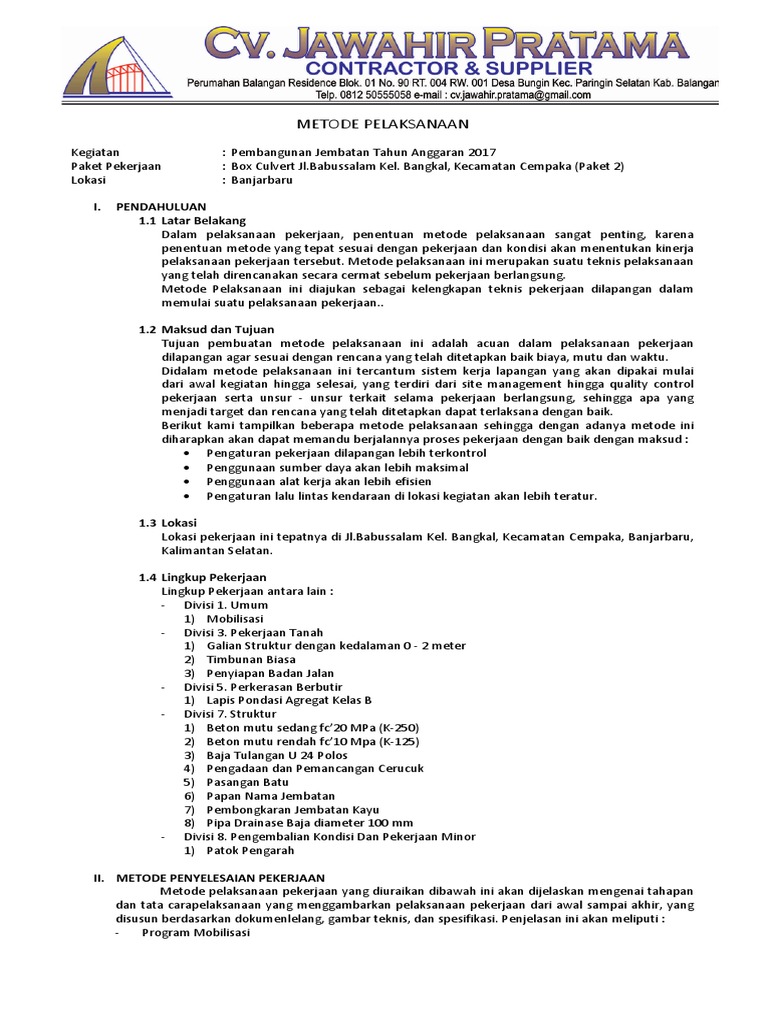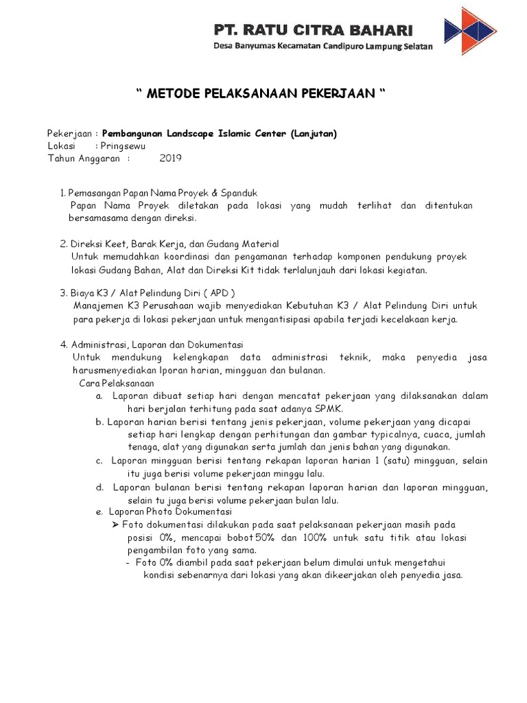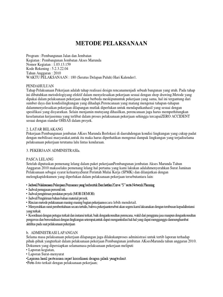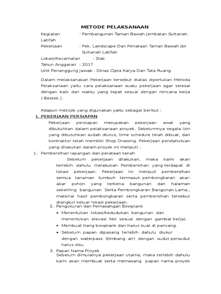 Metode pelaksanaan pada dasarnya metode pelaksanaan pekerjaan pembuatan landscape dan penataan. Pekerjaan pile cap diawali dengan pekerjaan persiapan yaitu menentukan as pile cap dengan menggunakan. Pelatihan pelaksana bendungan tahapan dan metode pelaksanaan. Semua pekerjaan harus merefer ke standart.
