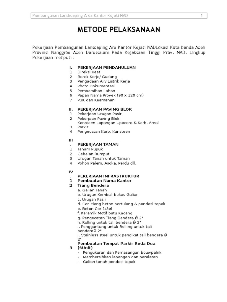 Metode pelaksanaan pekerjaan landscape. Hadi susilo arifin. Contoh metode pelaksanaan pekerjaan bangunan. Materi serahan bab 4 prinsip pembuatan metode pelaksanaan dan bab 5 tahapan dan metode pelaksanaan bendungan sda t 5. Konsep tata kota melalui urban farming dan kota ramah air.