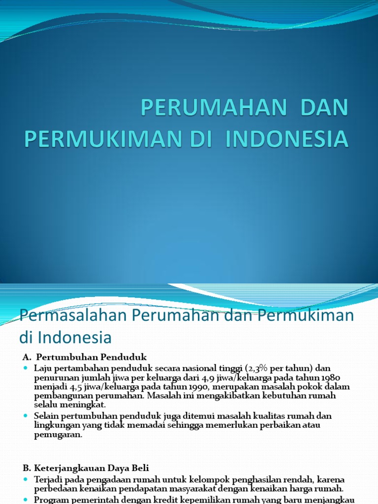 Perbedaan perumahan dan permukiman. Pada tulisan ini saya ingin berbagi tentang perbedaan kata permukiman dan pemukiman. Kawasan permukiman dapat dilihat dari klasifikasi permukiman dan tipe permukiman. Perumahan merupakan kelompok rumah yang berfungsi sebagai lingkungan tempat tinggal atau lingkungan hunian yang dilengkapi dengan infrastruktur dan sarana lingkungan. Program perbaikan perumahan dan permukiman dilakukan dengan pendekatan tribina bina manusia bina lingkungan dan bina usaha yang juga dilaksanakan oleh berbagai instansi terkait untuk meningkatkan kesejahteraan masyarakat dan kemampuan pengelolaan dan pemaliharaan sarana dan prasarana yang telah dibangun.