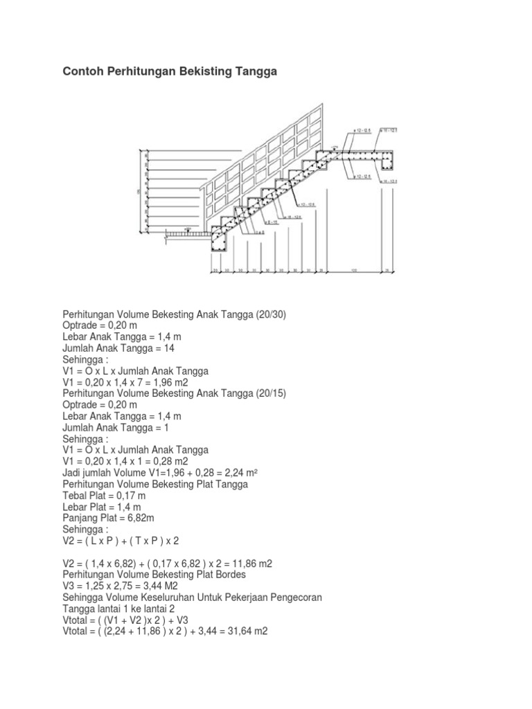 V2 l x p t x p x 2 v2 1 4 x 6 82 0 17 x 6 82 x 2 11 86 m2 perhitungan volume bekesting plat bordes v3 1 25 x 2 75 3 44 m2 sehingga volume keseluruhan untuk pekerjaan pengecoran tangga lantai 1 ke lantai 2. Tangga bangunan memiliki standar ukuran yaitu. Perhitungan volume bekesting plat tangga tebal plat 0 17 m lebar plat 1 4 m panjang plat 6 82m sehingga. Pertama tama siapkan tripleks dengan ukuran contoh 25 x 450 cm sebanyak dua lembar untuk dua sisi.