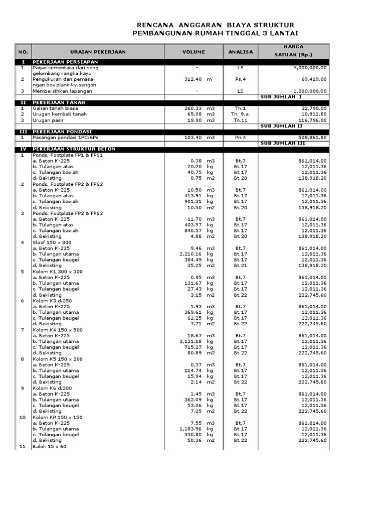 Perhitungan Struktur Bangunan 3 Lantai Excel