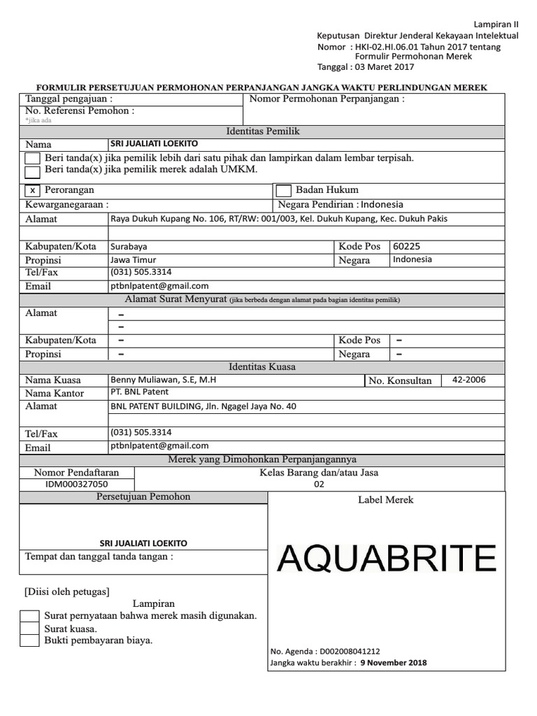 Untuk memberikan kepuasan layanan bnl telah berkolaborasi dengan advokat kekayaan intelektual yaitu mmp law firm sebagai antisipasi sekaligus memback up klien bnl yang mengalami permasalahan hukum kekayaan intelektual baik perdata maupun pidana. Peningkatan teknologi ini disebut invensi yang dapat dilindungi dalam bentuk perlindungan paten yang saat ini diatur dalam uu no 13 tahun 2016 tentang paten. 19 and is currently at jalan ngagel jaya jaya no. Bnl patent dikukuhkan sebagai pendaftar merek pertama secara elektronik online.
