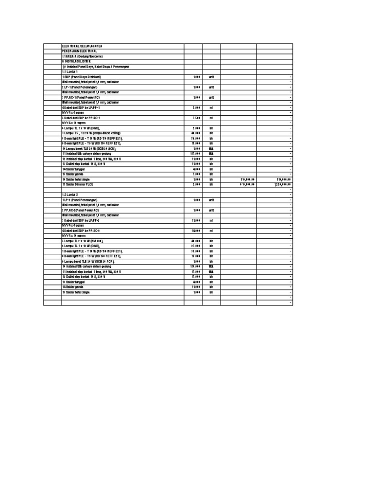 Sari asih ciputat tangerang banten rencana anggaran biaya bangunan atau sering disingkat rab adalah perhitungan biaya bangunan berdasarkan gambar bangunan dan spesifikasi pekerjaan konstruksi yang akan di bangun sehingga dengan adanya rab dapat dijadikan sebagai. Banyak orang yang meraba raba tentang kebutuhan sistem utilitas atau mekanikal elektrikal di rumah tinggalnya. Elektrikal seluruh area pekerjaan elektrikal i. Inilah contoh rab gedung bertingkat 3 lantai untuk pekerjaan sipil arsitektur mekanikal dan elektrikal pada salah satu bangunan gedung kantor di kota bogor tahun 2009.