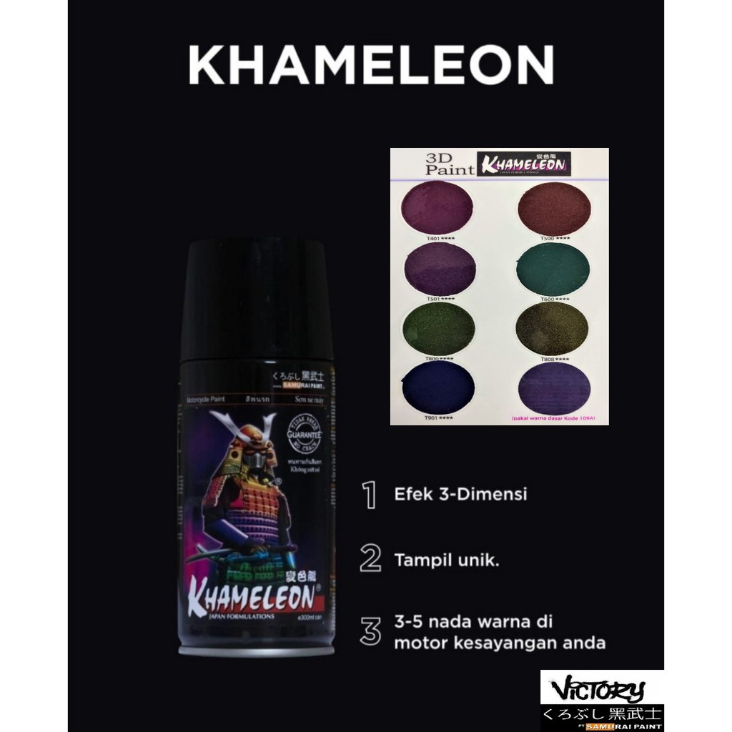 Warna dasar cat bunglon samurai. Jual cat semprot 3d samurai paint pylox pilok bunglon khameleon dengan harga rp99 000 dari toko online surya makmur motor kota malang. Cari produk aksesori body motor lainnya di tokopedia. Jual beli online aman dan nyaman hanya di tokopedia. Oleh dari itu diharap warna cat yang akan kita bagikan berikut ini dapat menimbulkan tambahan ide untuk membuat warna cat serta bisa memperingan kamu dalam membangun warna cat impian kamu.